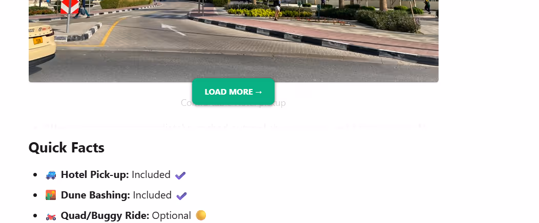 For those who want the nitty-gritty, click the green “Load More” to dive deep into each tour’s details. You'll find this buttom by default after each and every summary section just above the "Quick Facts" section.
